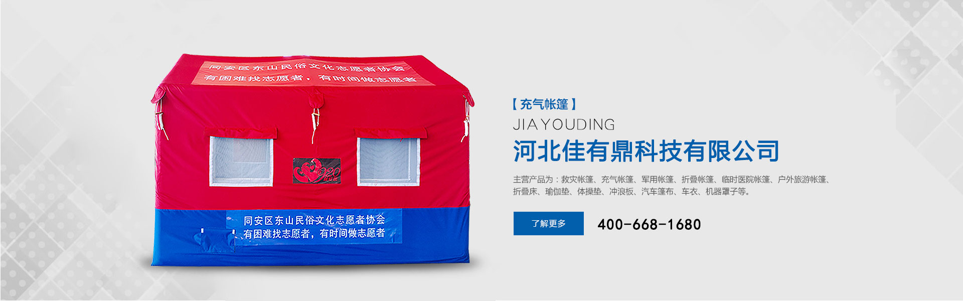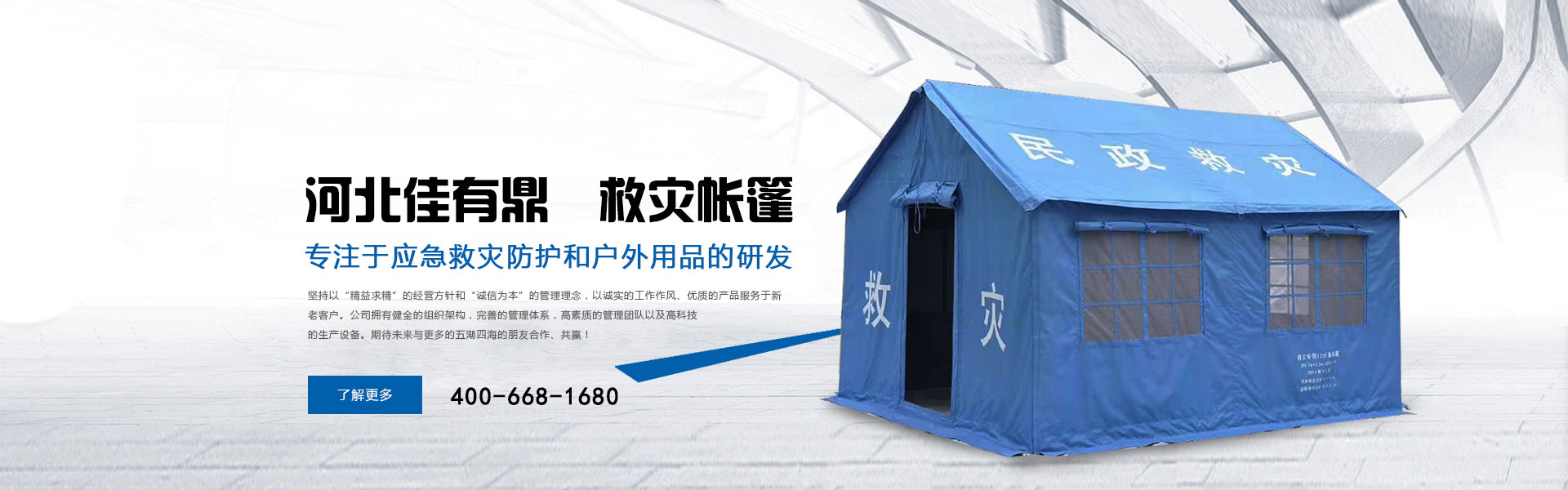 河北佳有鼎科技有限公司多年來(lái)專注于應(yīng)急救災(zāi)防護(hù)和戶外用品的研發(fā),是一家集研發(fā)、設(shè)計(jì)、生產(chǎn)、銷(xiāo)售、服務(wù)于一體的綜合型公司。位于大廣高速和邢衡高速的連接地段,工廠占地面積約2萬(wàn)平方米,3分鐘可達(dá)高速其便捷的交通優(yōu)勢(shì)可以快速服務(wù)于北京天津河北省會(huì)山東省會(huì)等。